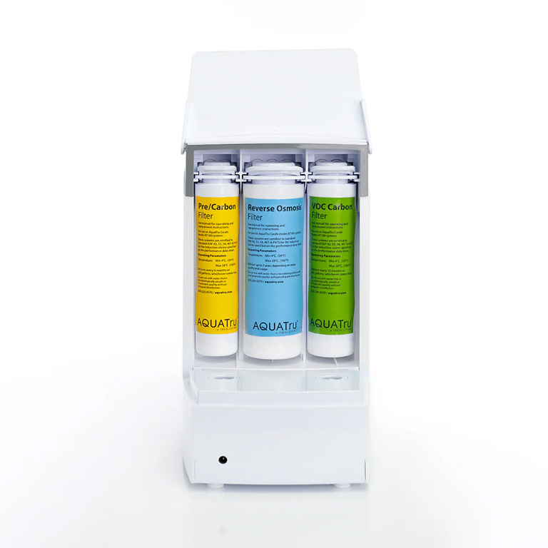 Primary Function: Compact countertop reverse osmosis water purifier designed for individuals or small households. Removes harmful contaminants such as lead, fluoride, chlorine, PFAS, providing pure, refreshing water in a stylish, space-saving glass carafe.