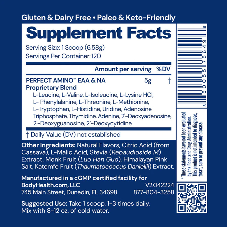 PERFECT AMINO™ is 100% Vegan, free of Gluten, Soy, and Dairy, non-GMO.