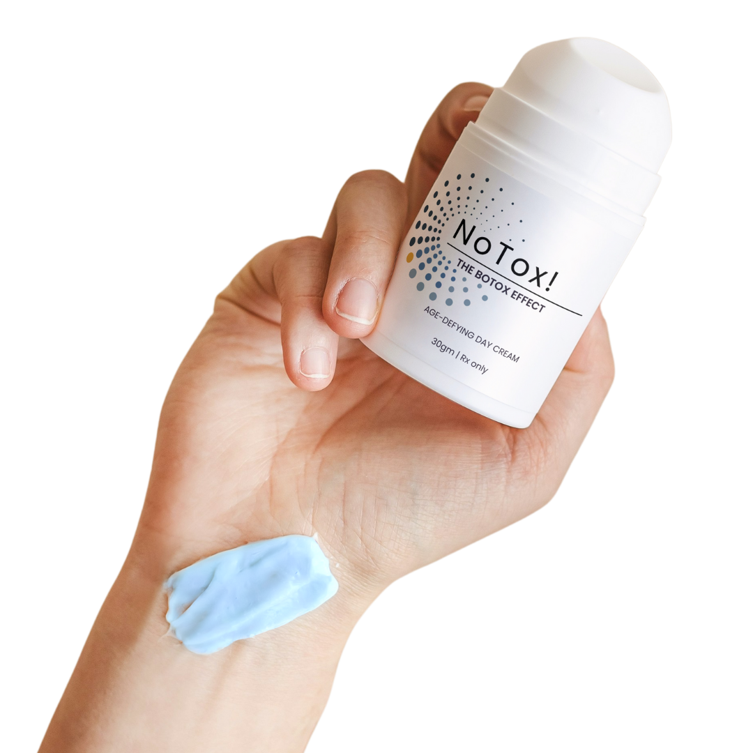 No-Tox! is a prescription-strength peptide cream designed to smooth expression lines and rejuvenate skin during the day—without injections. It features a powerful blend of Leuphasyl® and Argireline®, peptides shown to relax facial muscles and reduce wrinkle depth, mimicking the effects of Botox naturally. DMAE provides firming support, GHK-Cu copper peptide stimulates collagen and tissue repair, and hyaluronic acid delivers deep hydration.