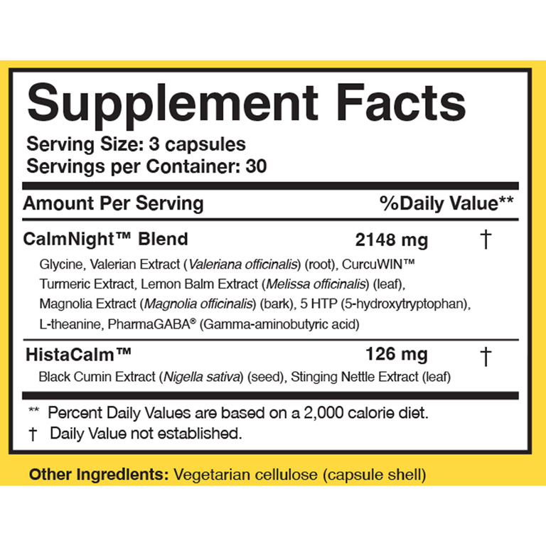 Researched Nutritionals Circadian PM – A multifaceted approach is needed to support falling asleep faster, staying asleep longer, and achieving higher quality, more restful sleep. Key active ingredients: CalmNight™ Blend | 2148mg Glycine, Valerian Extract (Valeriana officinalis) (root), CurcuWIN™ Turmeric Extract, Lemon Balm Extract (Melissa officinalis) (leaf), Magnolia Extract (Magnolia officinalis) (bark), 5 HTP (5-hydroxytryptophan), L-theanine, PharmaGABA® (Gamma-aminobutyric acid) HistaCalm™ | 126mg