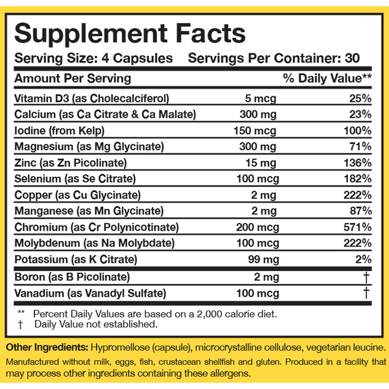 Vanadium (as Vanadyl Sulfate) | 100mcg. Each bottle provides capsule / 120. Manufactured to cGMP standards and trusted by MyHealth1st.